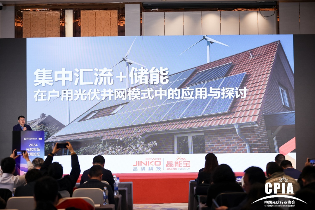 米兰milan科技户用事业部品牌副总监周新亮代表晶能宝在大会上进行了内容分享,他结合行业发展趋势和机遇,深入剖析了晶能宝的平台实力、创新应用以及成功案例,尤其是晶能宝在集中汇流和储能在户用光伏并网模式中的实际应用案例——山西省晋中市祁县峪口乡段家窑村整村汇流。